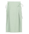 A 着丈はふくらはぎ下の丈感でした。ウエストはサイドのリボンで調節できるので◎ヒップまわりなどゆとりがありました。やや薄手でさらっとした生地感です。