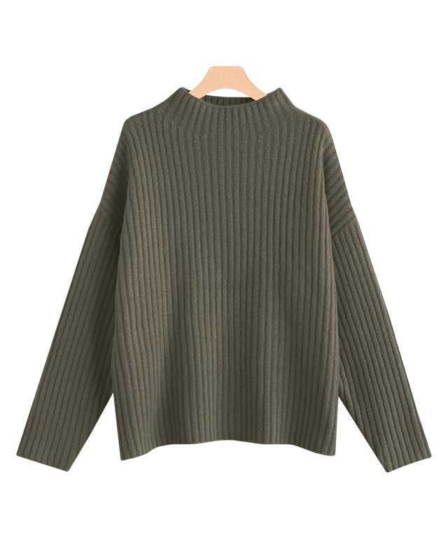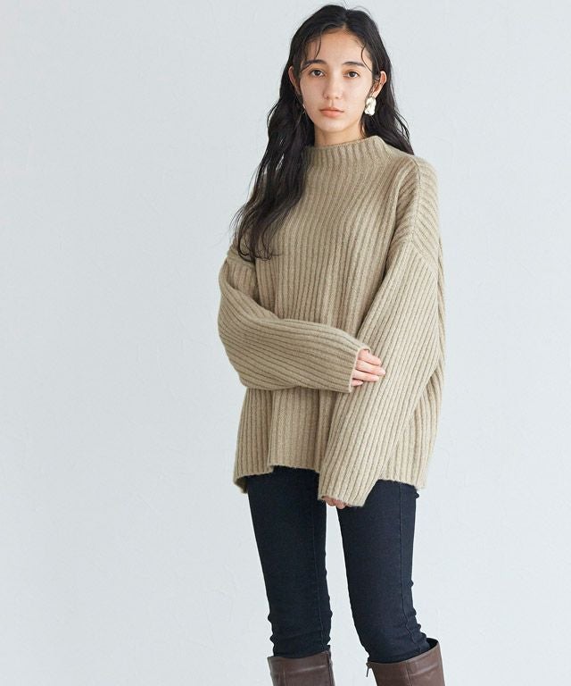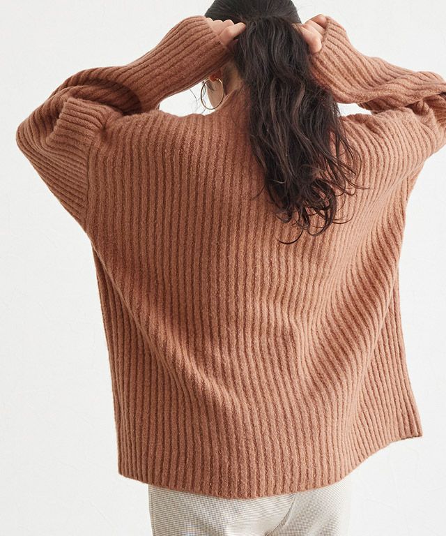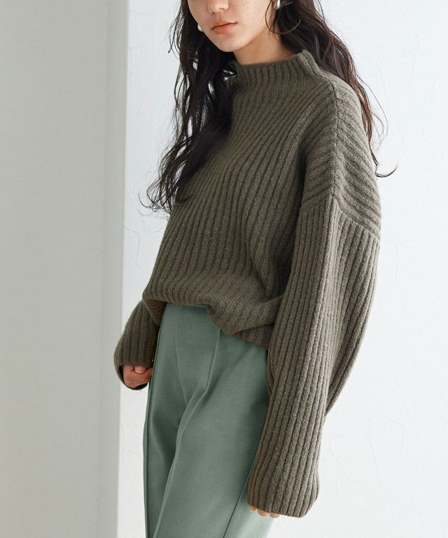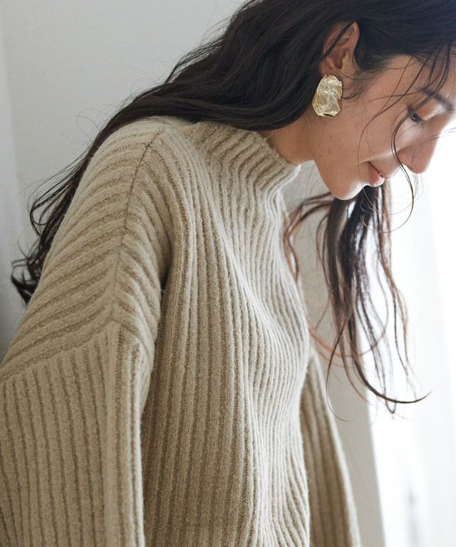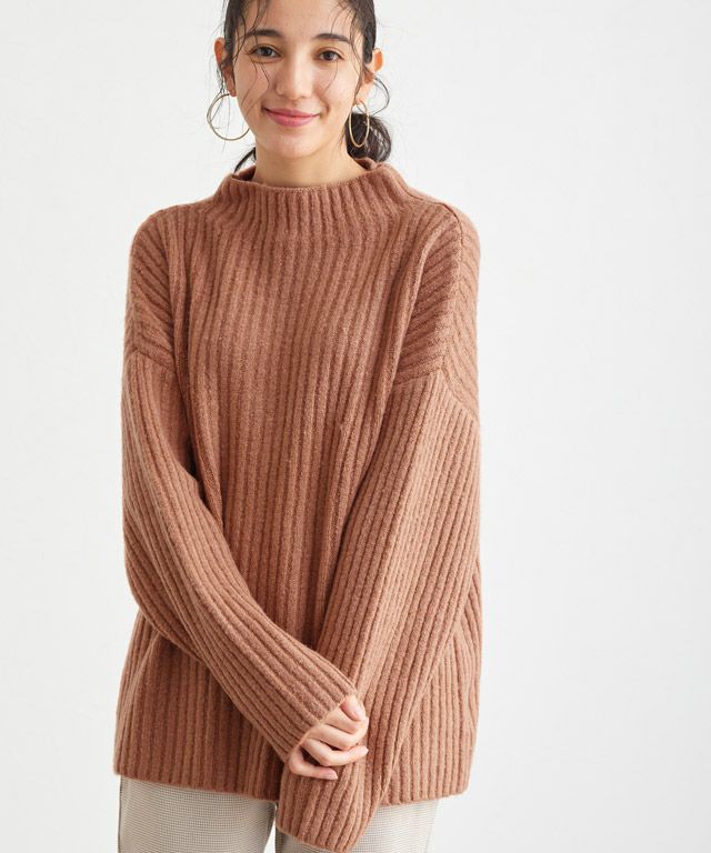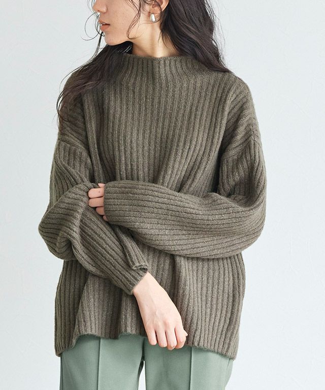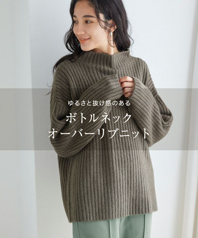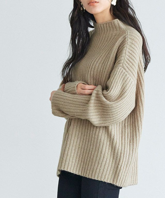 ゆるさと抜け感のある“ボトルネックオーバーリブニット”