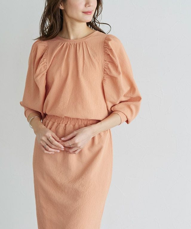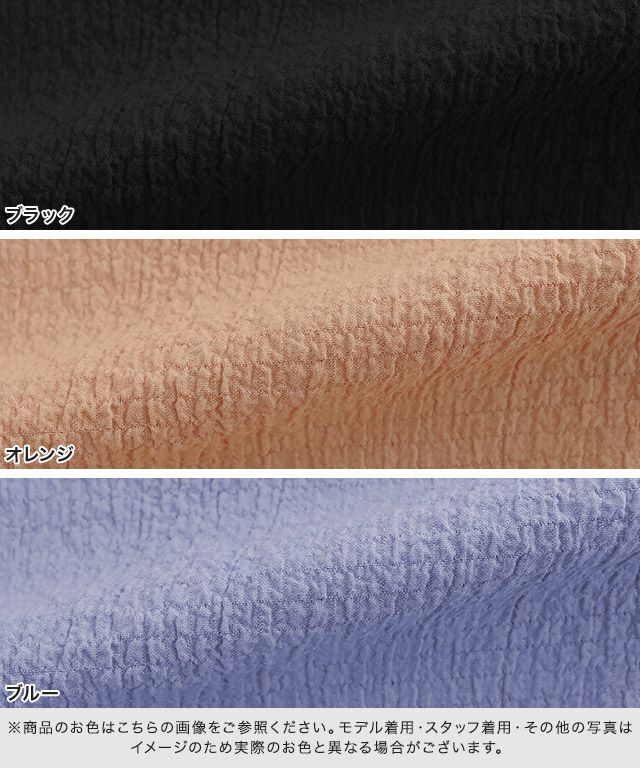 シボ感のある生地が表情を与えてくれるブラウス素材。柔らかく薄手で軽い着心地です。