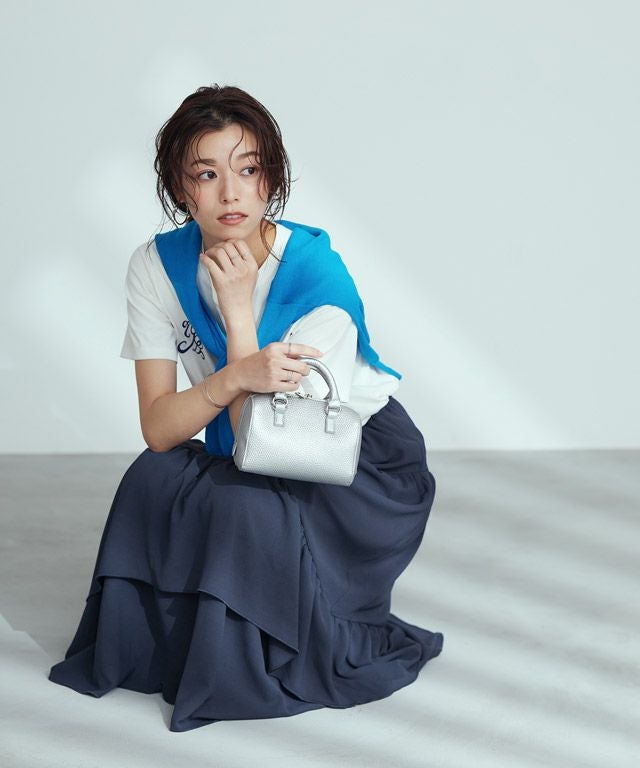 揺れる度にアクセントになるアシンメトリーデザインがポイント。あえて生地端の始末をロックにすることで、単調にならずフェミニンな印象もプラスしてくれます。