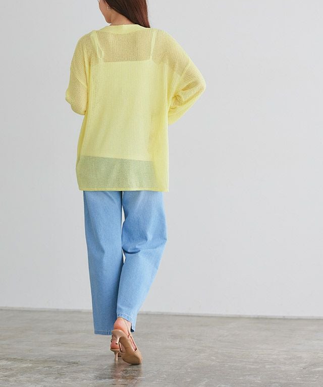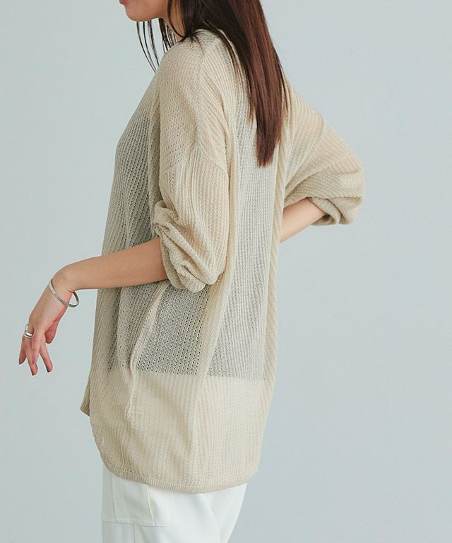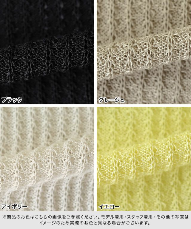 全カラーニットの編み目に透け感が生じます。