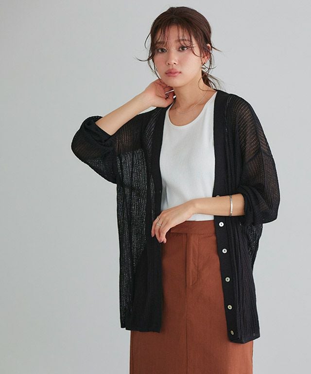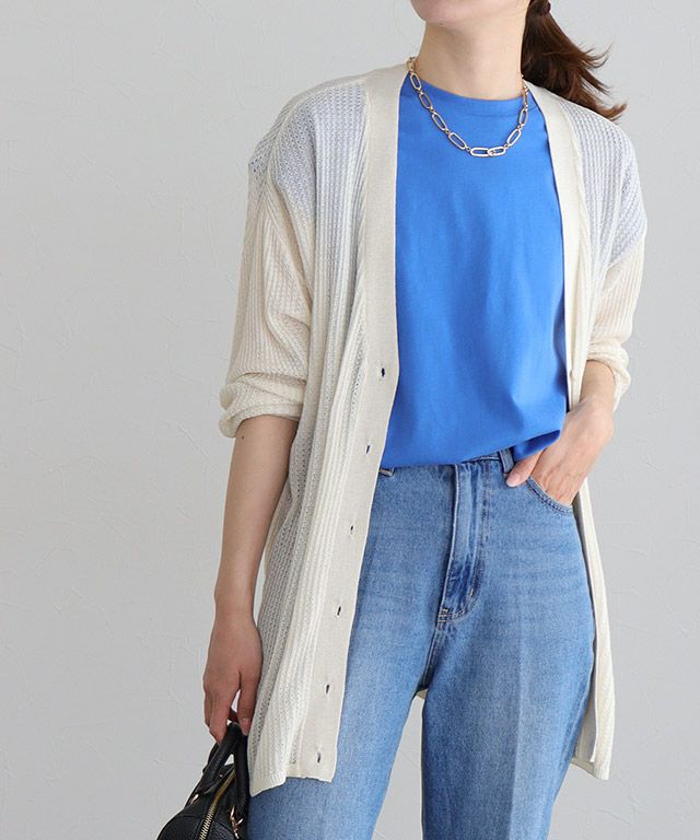 肌触りがサラッとしていて心地よく、長さがちょうど良いです。冷房が苦手‥夏場のカーディガンは常に持ち歩くので、シワにならずに軽いこの製品は最適です。
