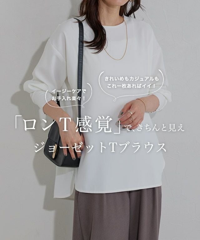 Tシャツ感覚で着られて“きちんと見え”“【イージーケア】ジョーゼットブラウスT”