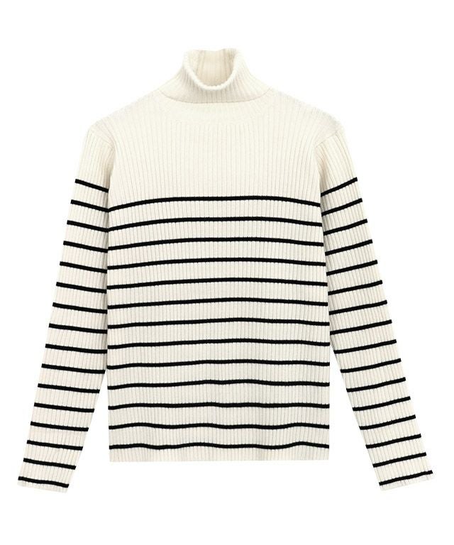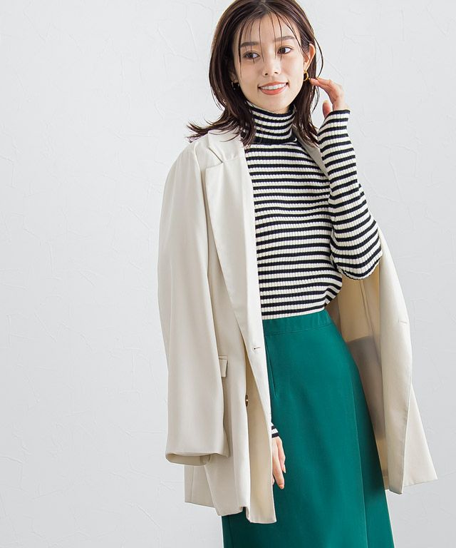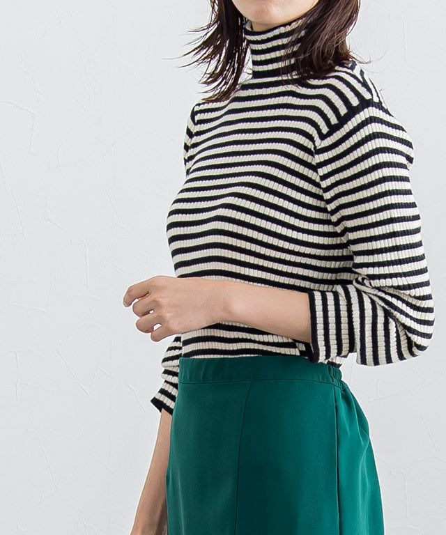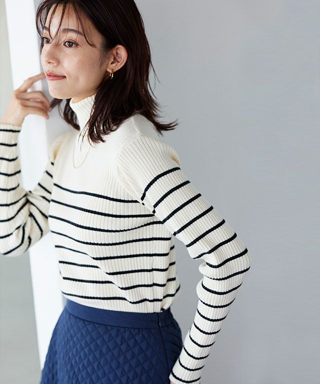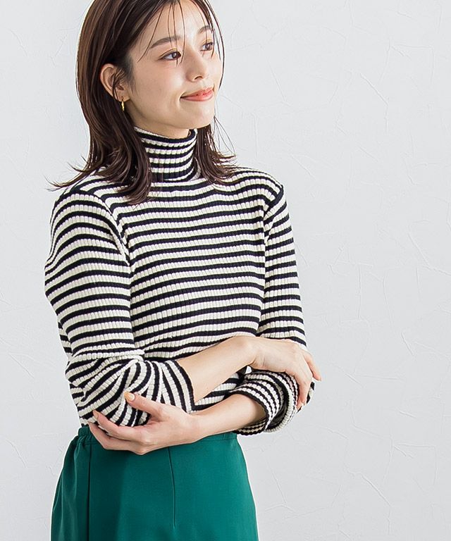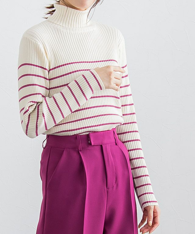 ワードローブに欠かせない“選べるタートルネックリブニット” レーヨン混なので柔らかく、滑らかな肌触りが魅力的でずっと触っていたくなるようなリブニット。 シンプルなボーダー柄は一枚ではもちろん、レイヤードなど着回し力抜群でスタイリングの幅が広がります。パネルボーダーはスタイリングのアクセントになり、一枚でこなれ感を演出します。 【ブランド】 Pierrot(ピエロ)