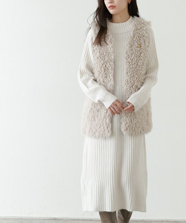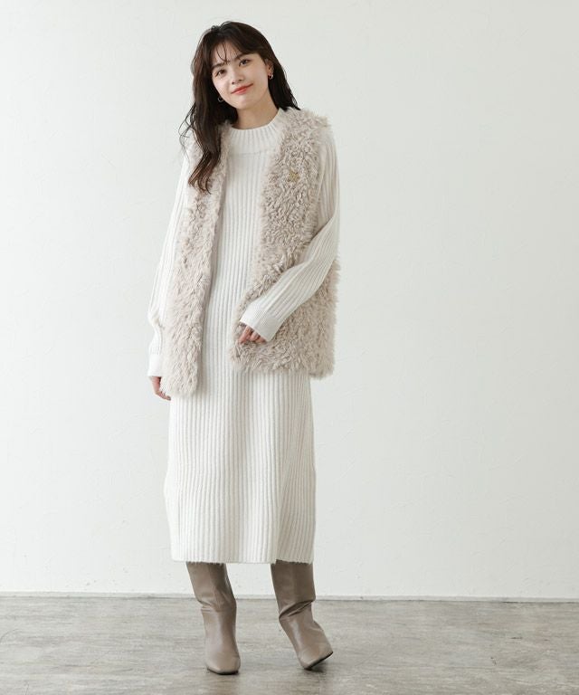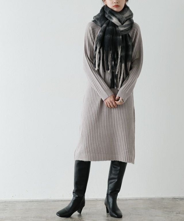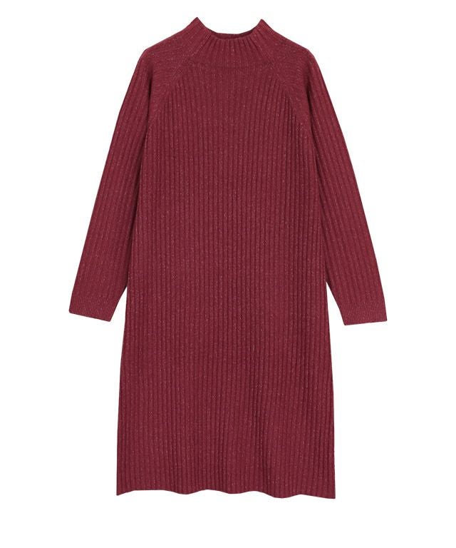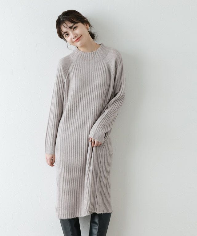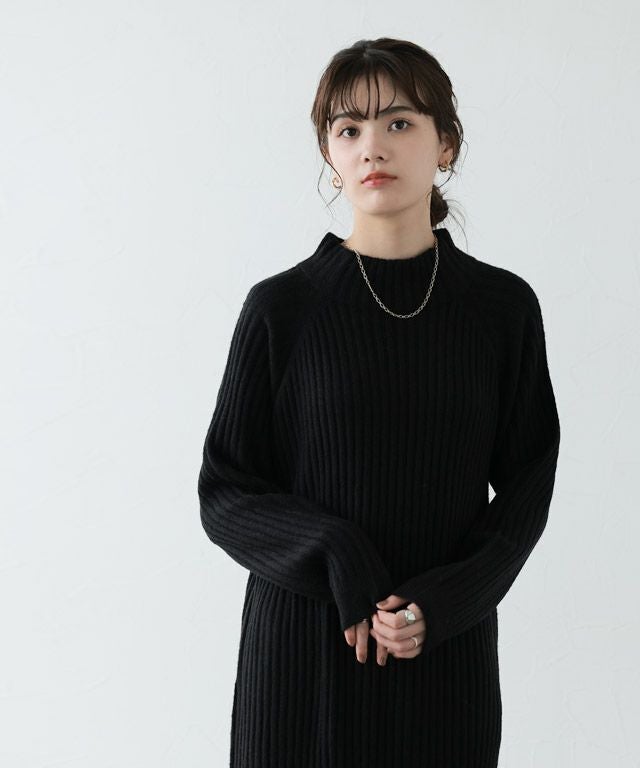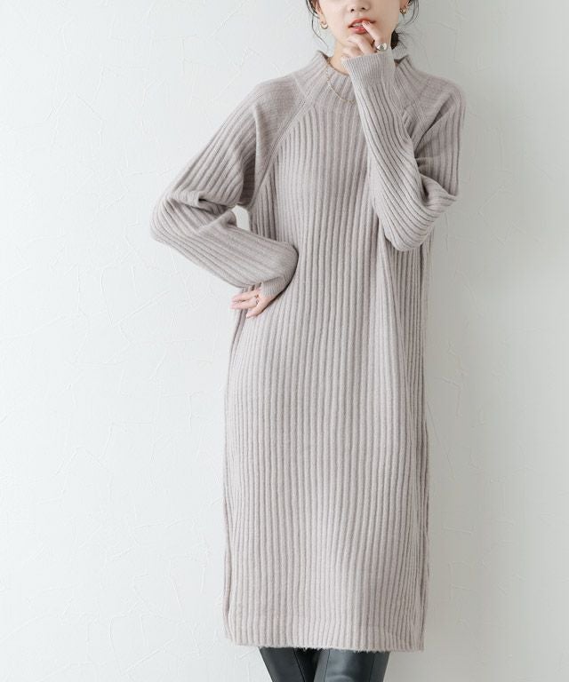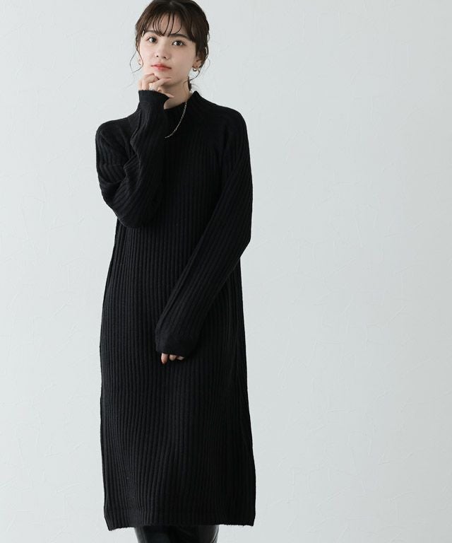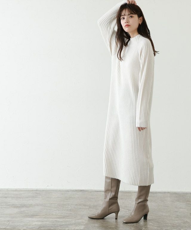 ワイドリブが暖かみを演出“ボトルネックリブニットワンピース”