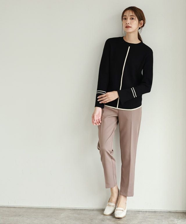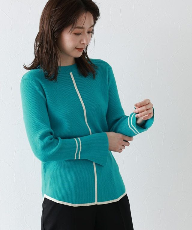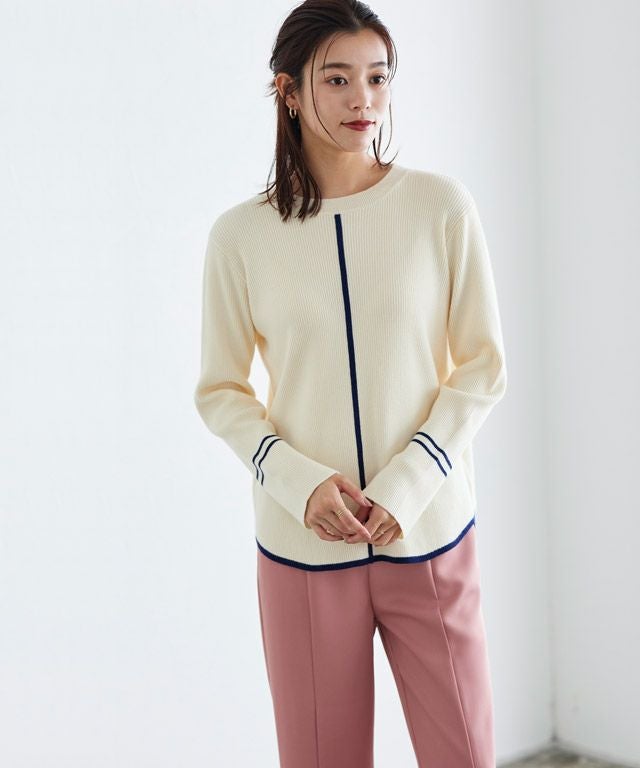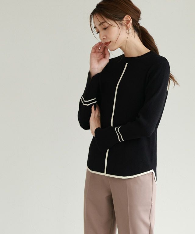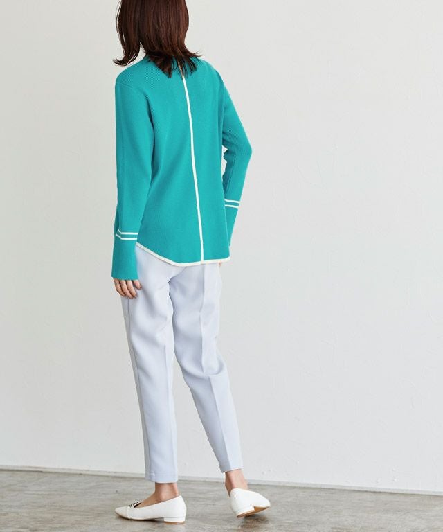前身頃と袖口、裾に施した配色デザインが一枚で着映えるポイントに◎ジャケットインもしやすいシンプルなすっきりとしたシルエットに、袖口にあしらったスリットが程よく抜け感をプラスし、女性らしいトレンドスタイリングへ導きます。