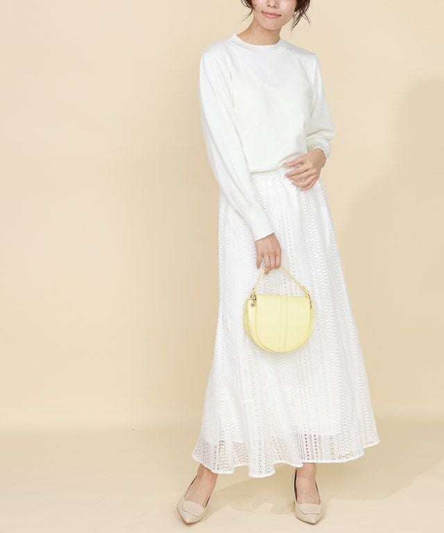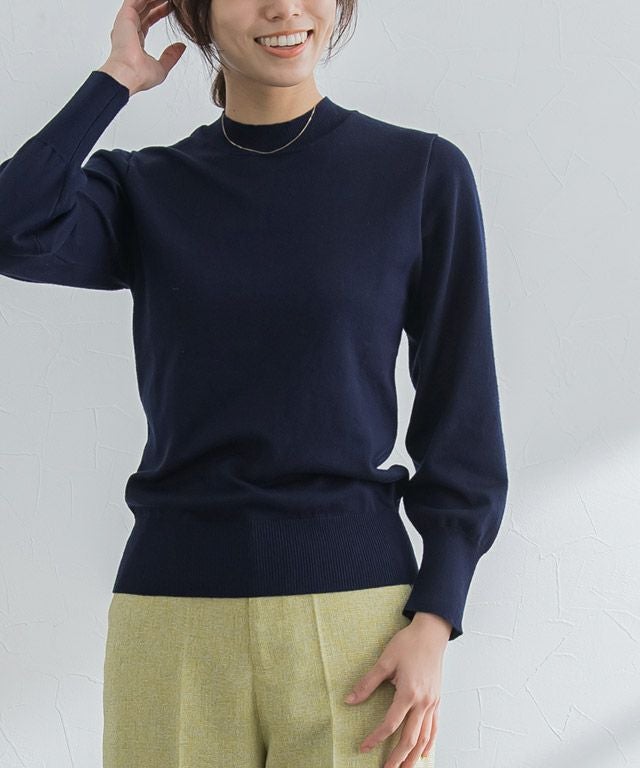 また、ニット製品は生産の過程上「生地を織る際の糸の継ぎ目」繊維の「混紡」、プレス加工、製品洗い加工によって形やサイズ(5cm前後)に誤差が生じる場合がございますが品質上の問題はございません。