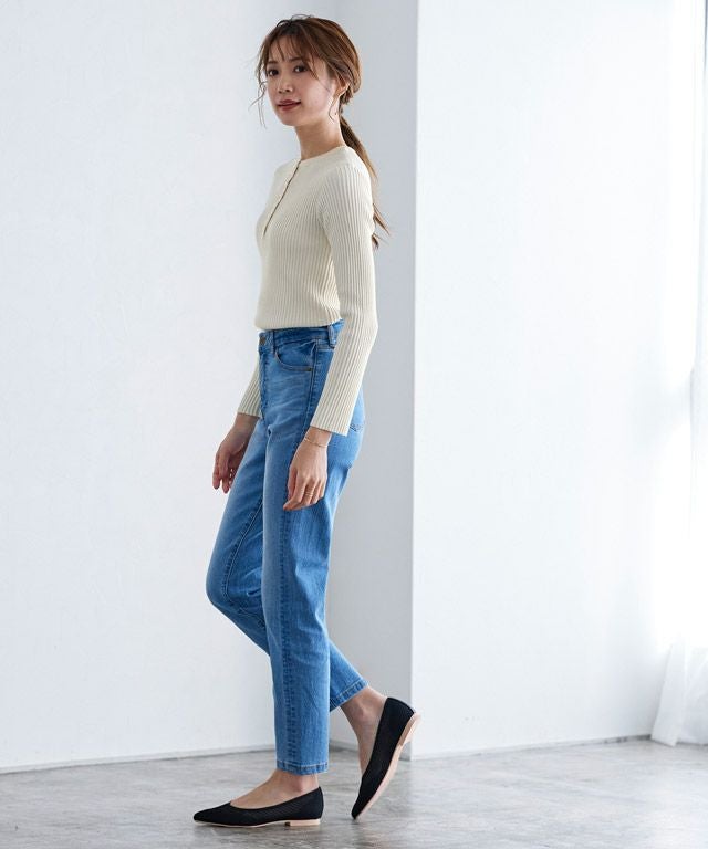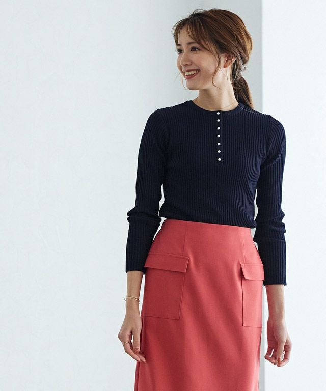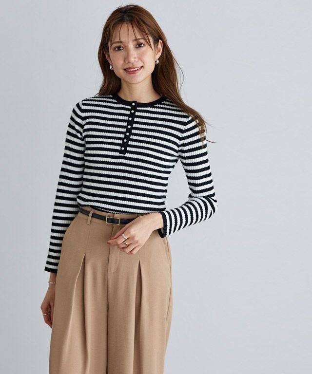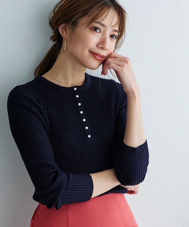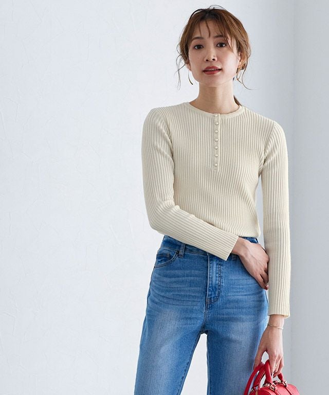 程良い女性らしさをプラスする“ヘンリーネックニット”