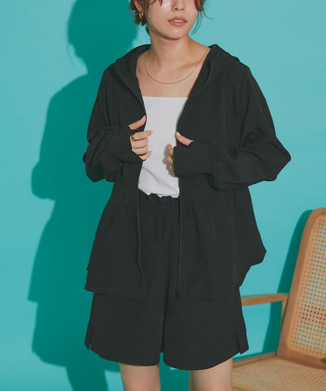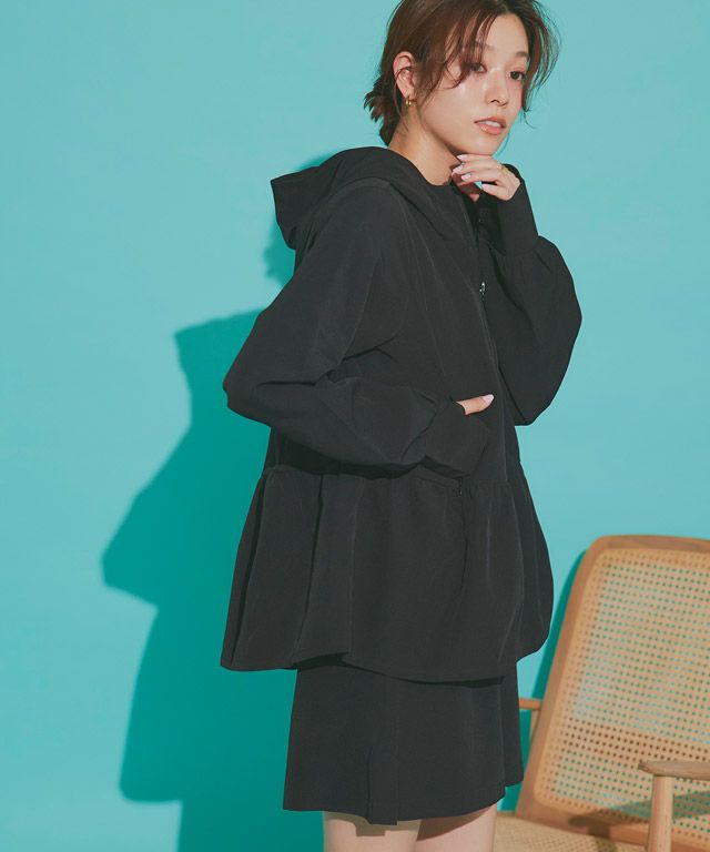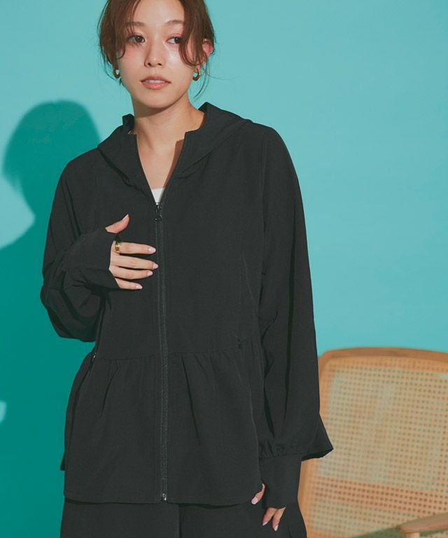 フェミニンなデザインが目を引く着映えフーディー“【ラッシュガード】フレアフーディ”