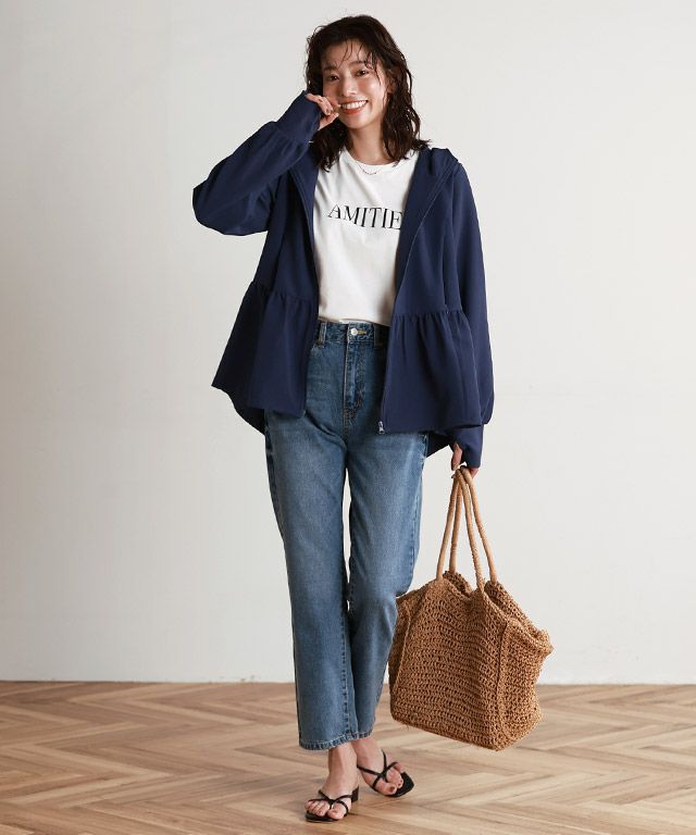 デザインがとても可愛いです。指穴が付いているので、手の甲まで日焼け防止できたり、チャック付きのポケットが付いていたり、機能性が良いのが嬉しいです。普段使い出来るのがいいと思って購入しましたが、私は真夏は暑くて着れないかな。でも、この夏、海やプールに行く時に着るのを楽しみにしています。