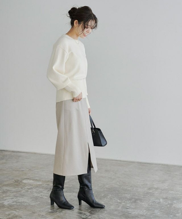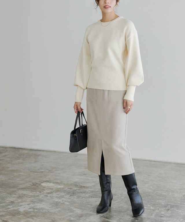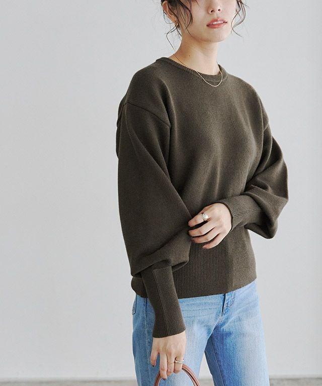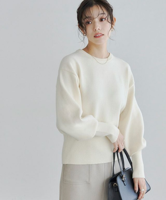 こなれ見えする“ボリュームスリーブクロップドニット”