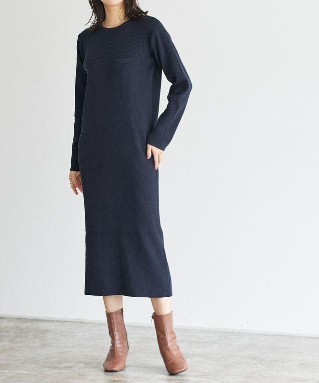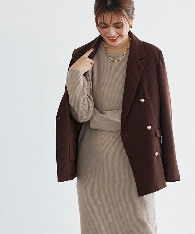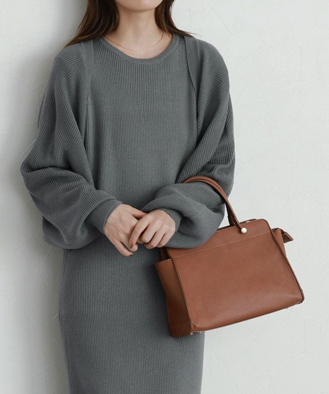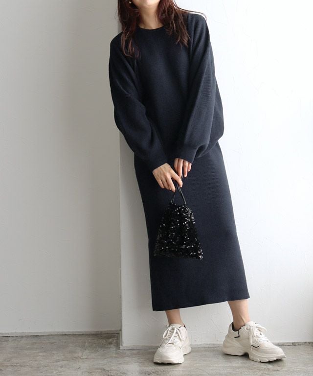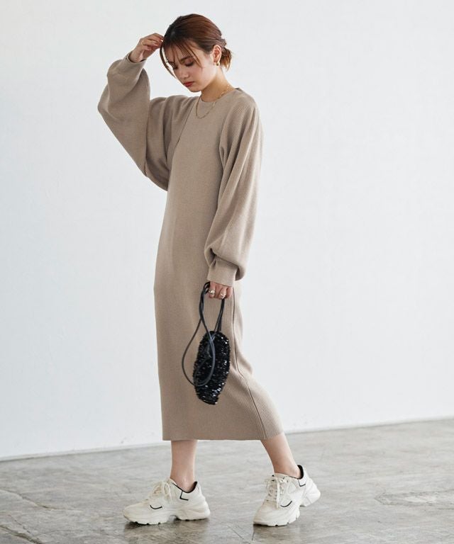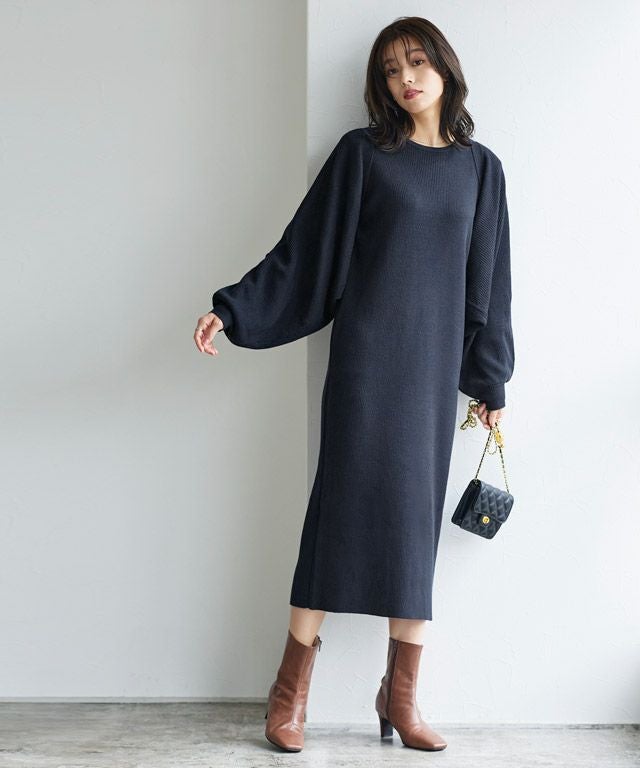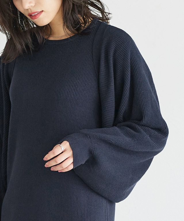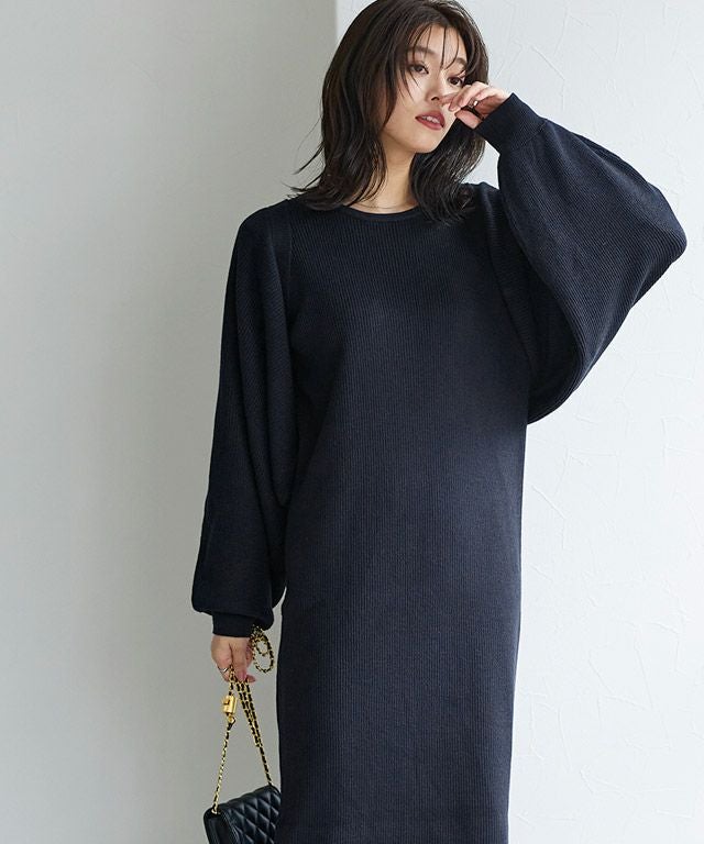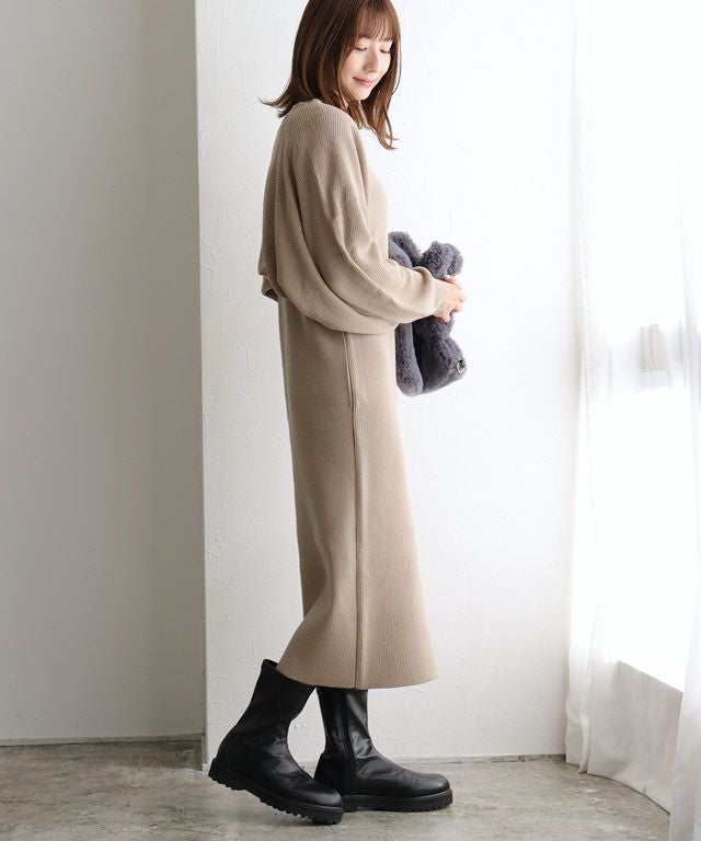 トレンドのニットボレロとワンピースがセットになったアイテム。ボレロは畦編みでカジュアルな雰囲気に。ぽわんとしたボリュームシルエットがポイントです。ワンピースはすとんと落ちるストレートシルエットとリブ編みで厚みを出し、身体のラインを拾いにくいデザインに。セットアップで着用はもちろん、単品使いでも着回し自由自在です。