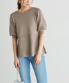 一枚でフェミニンスタイリングが完成する“ボリュームスリーブフレアニット”