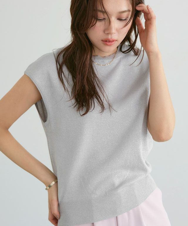 ラメ糸を使用した素材が、トレンドかつ大人の華やかさを演出します。派手すぎない程良いラメ感と天竺編みで上品な印象に。