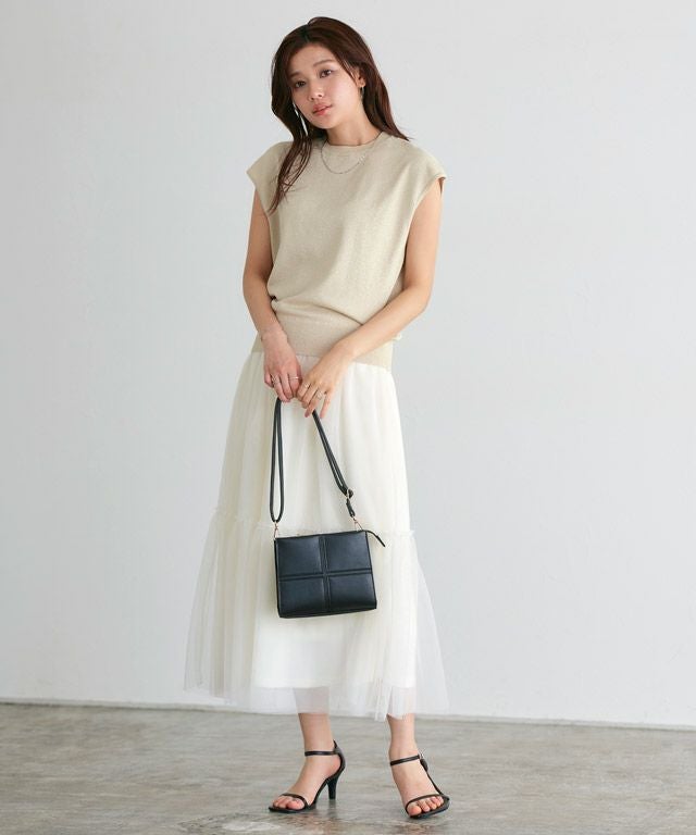ラメがアクセントになるので、着回しやすいシンプルなシルエットに仕上げた一枚。フレンチスリーブが上品な印象に仕上げてくれます。ボトムスを選ばずON/OFF問わず取り入れやすいデザインです。