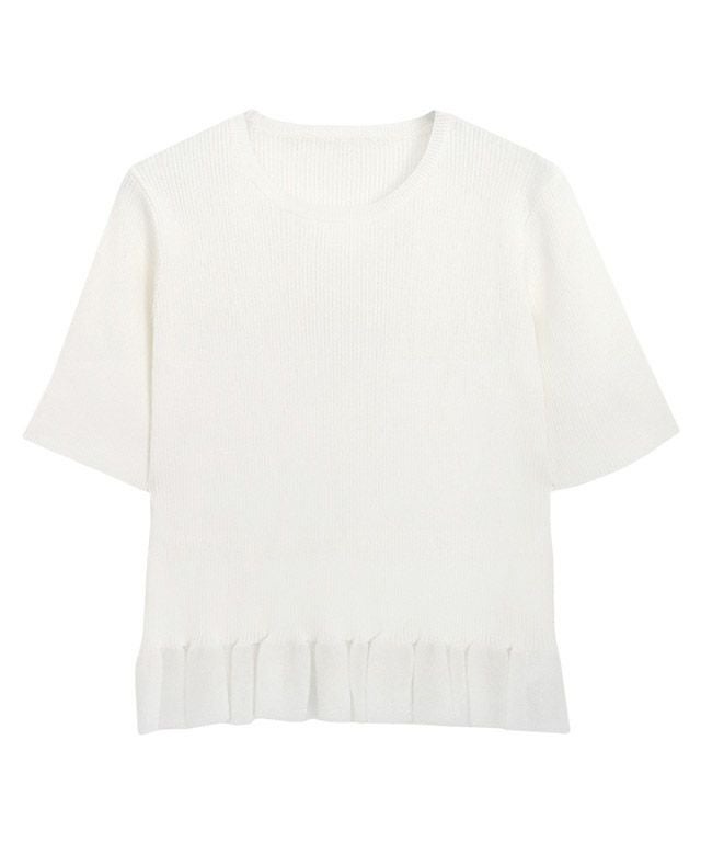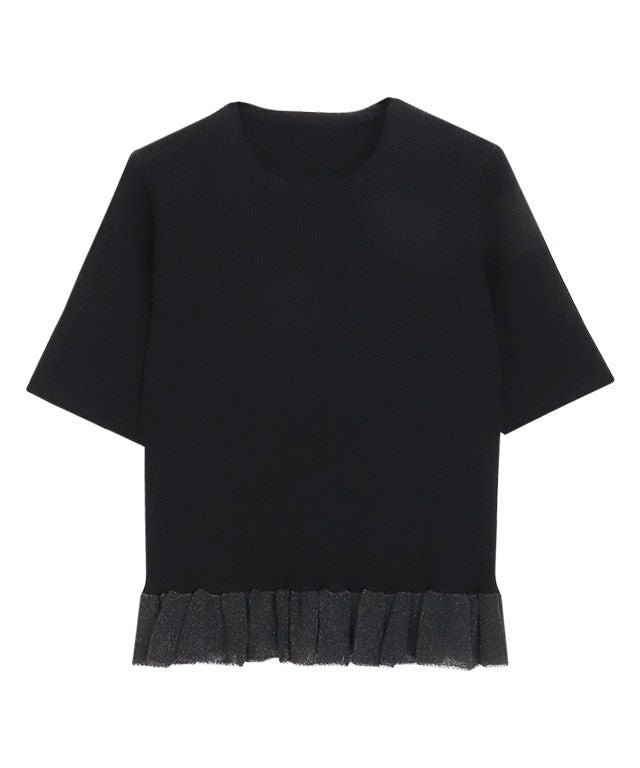 シャリ感のあるニットでサラッと着用しやすい一枚。裾はハリ感のある素材にラメ糸をMIXさせることでトレンド要素をプラスしました。
