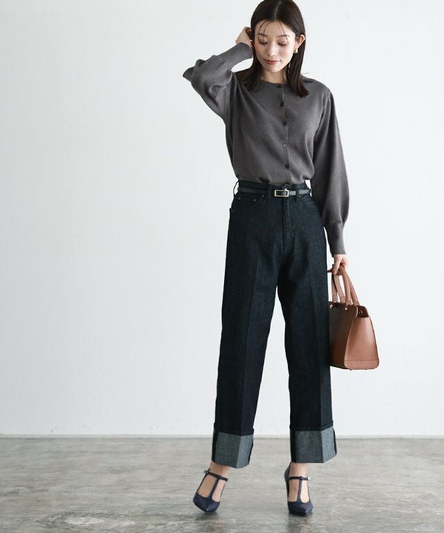 また、ニット製品は生産の過程上「生地を織る際の糸の継ぎ目」繊維の「混紡」、プレス加工、製品洗い加工によって形やサイズ(5cm前後)に誤差が生じる場合がございますが品質上の問題はございません。