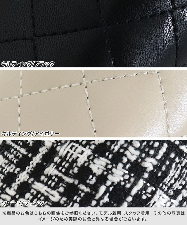 さらっとした素材にキルティング加工を施しスタイリングのアクセントになり、ブラックのツイードは大人な雰囲気とシーズンムード高めてくれます。