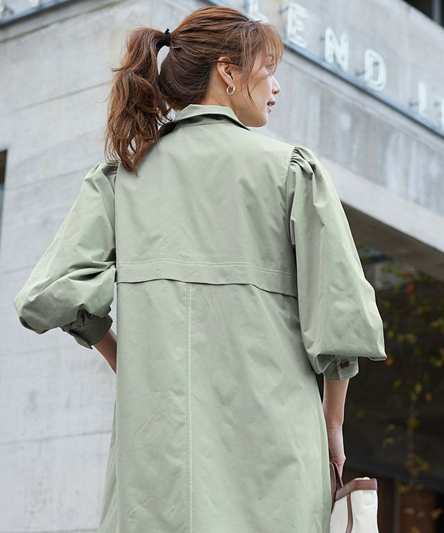 肩から袖にかけてたっぷりとボリュームのあるデザインとスタンドカラーが相まって旬なスタイリングへと導き、一枚でサマ見えします◎