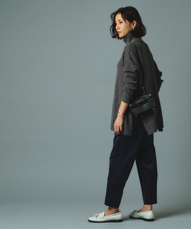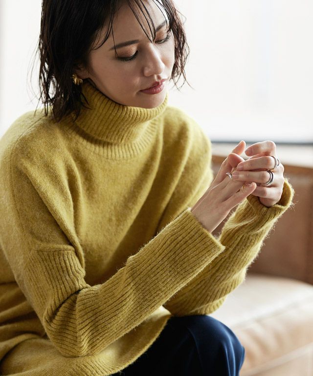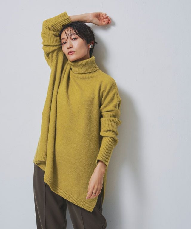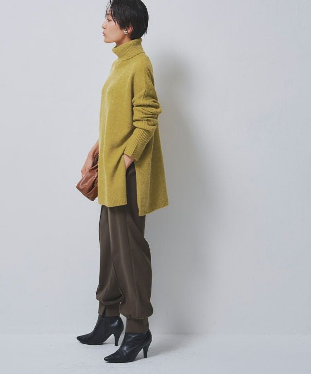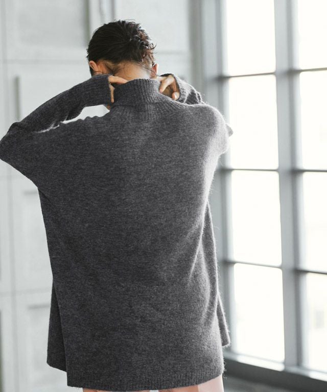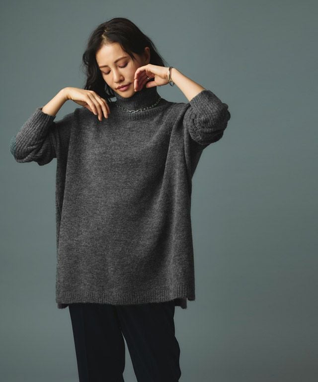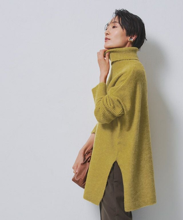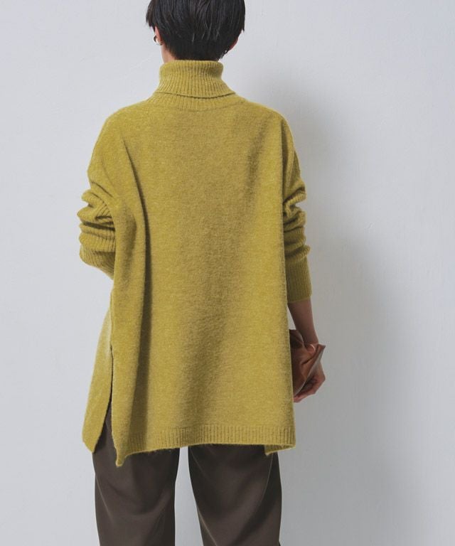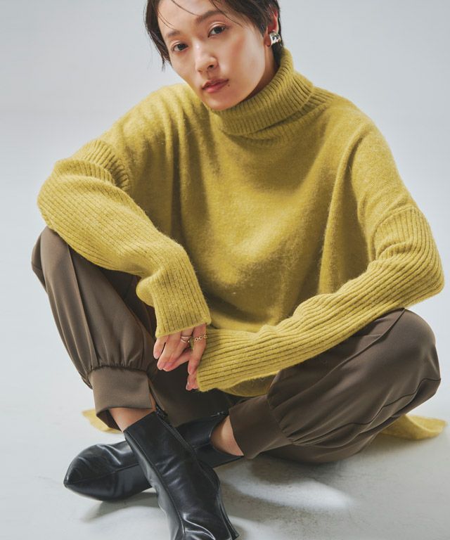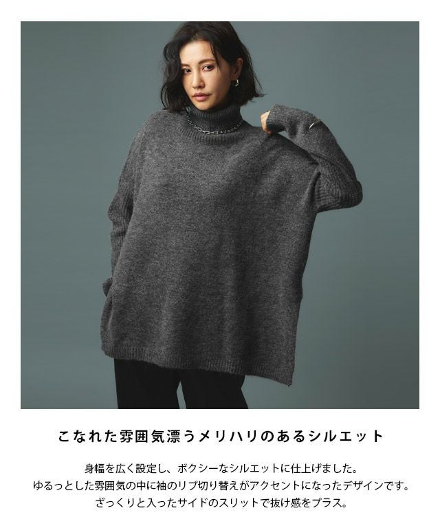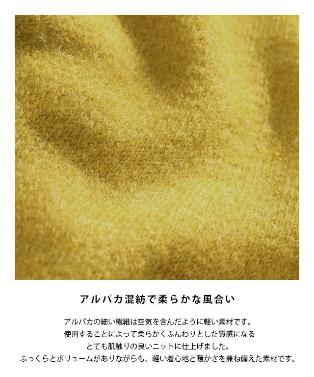 アルパカの細い繊維は空気を含んだように軽い素材です。使用することによって柔らかくふんわりとした質感になる、とても肌触りの良いニットに仕上げました。ふっくらとボリュームがありながらも、軽い着心地と暖かさを兼ね備えた素材です。 身幅を広く設定し、ボクシーなシルエットに仕上げました。ゆるっとした雰囲気の中に袖のリブ切り替えがアクセントになったデザインです。ざっくりと入ったサイドのスリットで抜け感をプラス。ボリューミーなタートルネックが温かみのある一枚です。長めの袖丈はくしゅっとこなれ感のあるスタイリングを演出します。 【ブランド】 RASW(ラス)
