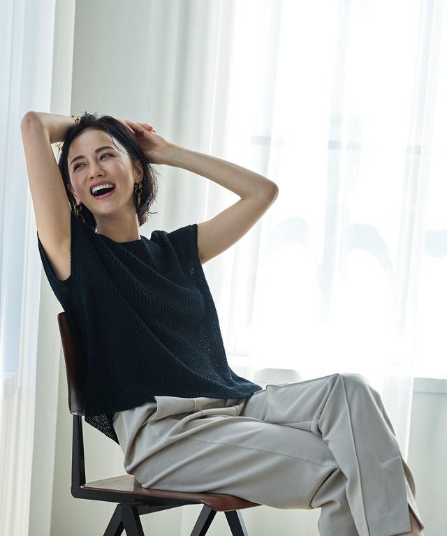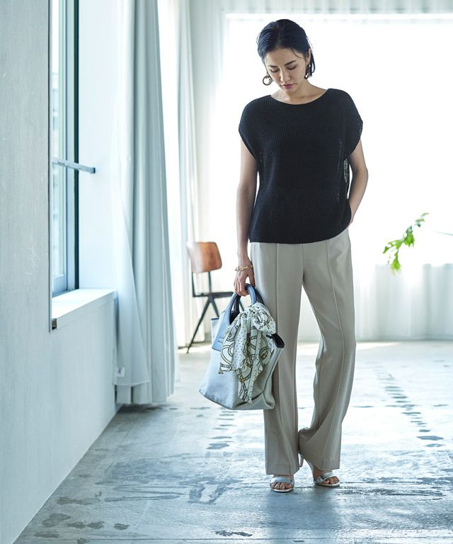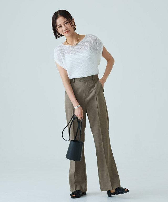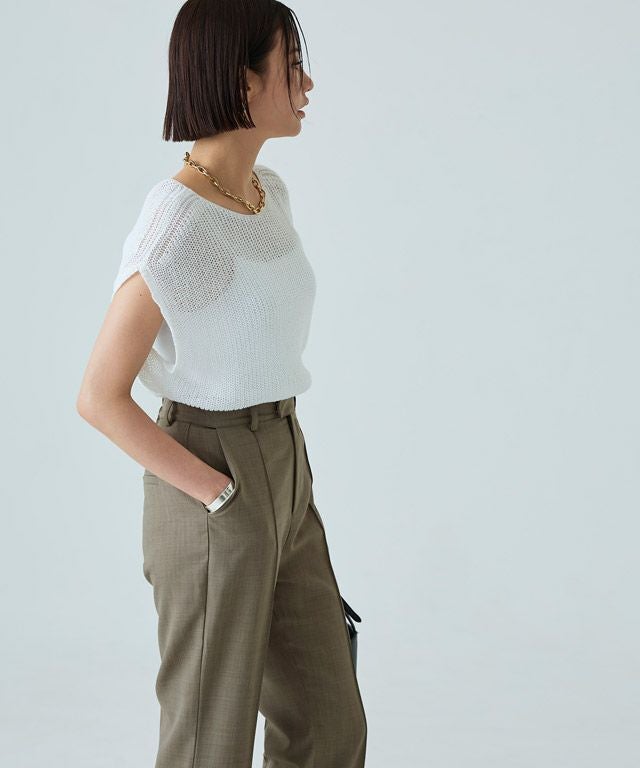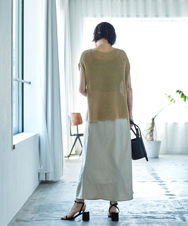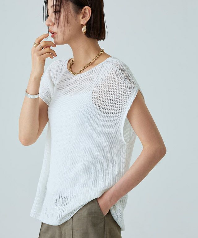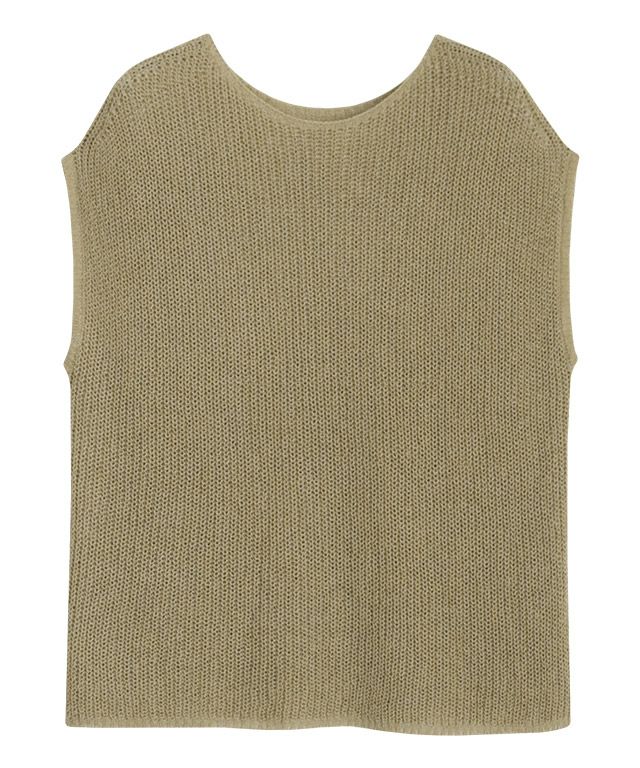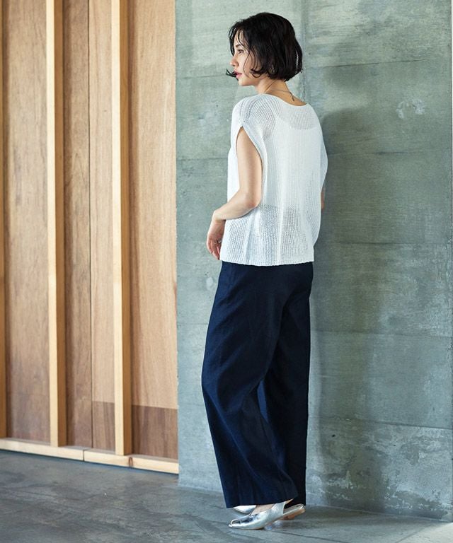 リネンならではの肌触りと、清涼感がラフな表情に導きます。ざっくりとした編地が程良い透け感を作り出し涼し気な印象に。柔らかく、肌なじみの良い風合いが魅力です。