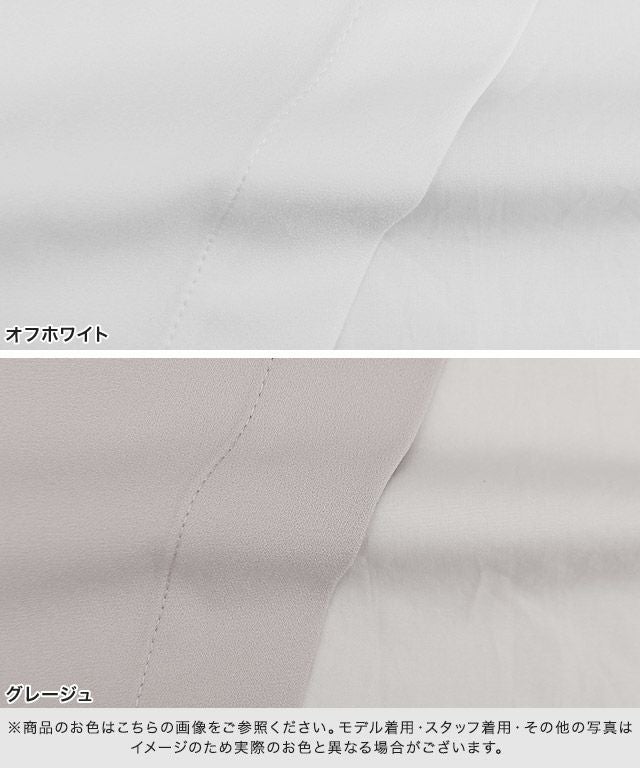 表地はジョーゼット素材で着るだけでキレイめな印象に。後ろの切り替え部分はハリ感のある綿100%素材で、柔らかなジョーゼットとの異素材使いがポイントに◎