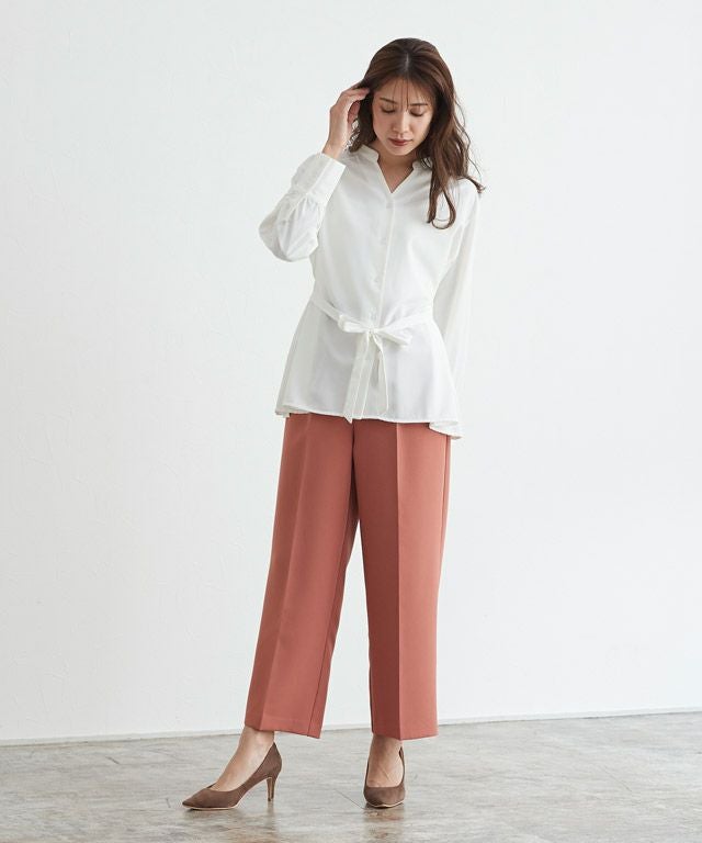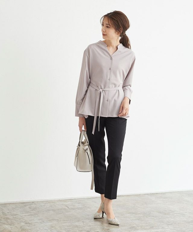 後ろタックデザインノーカラーブラウス【スピード配送】