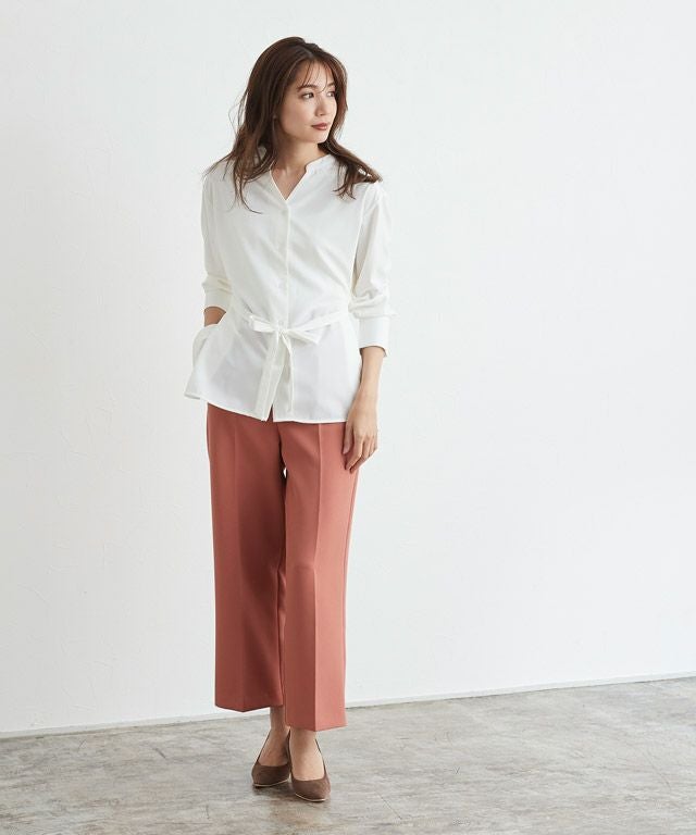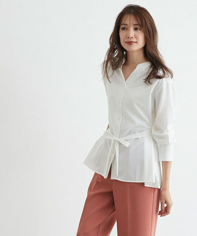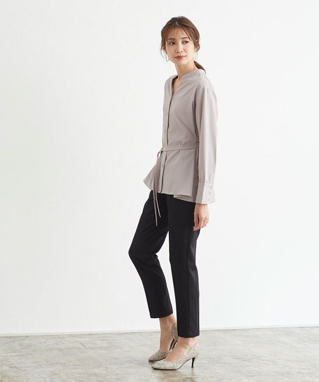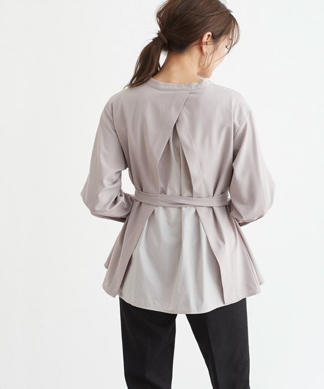 後ろタックデザインノーカラーブラウス