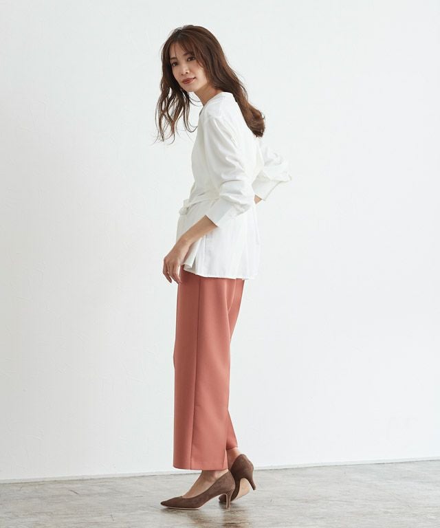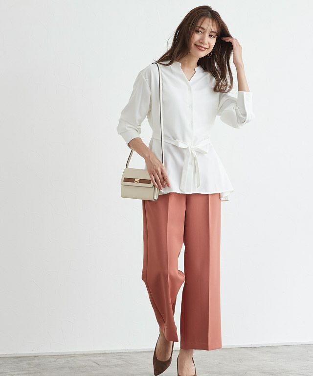 一枚でお洒落見れ叶う“後ろタックデザインノーカラーブラウス”