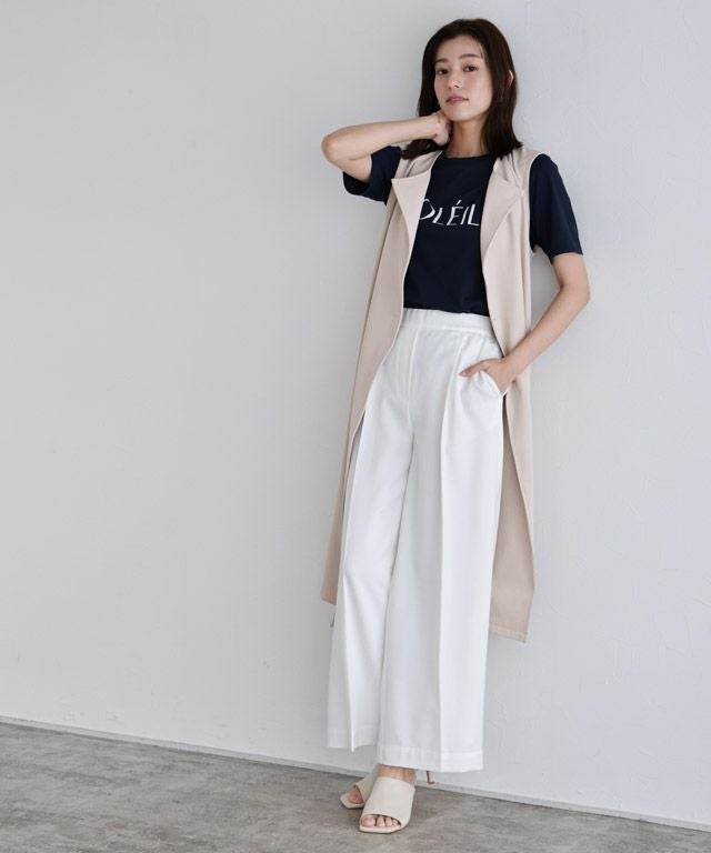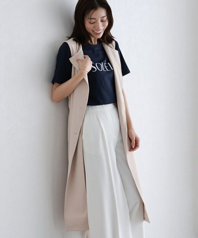 ショートジャケットとジレがセットになったトレンチコート。セットで着用するとトレンチになり、単品での着用もできるので着回しの巾が広がる一枚。ベルトを前で巻くのか、後ろで巻くのかでも印象が変わり、ON/OFF着用できます。