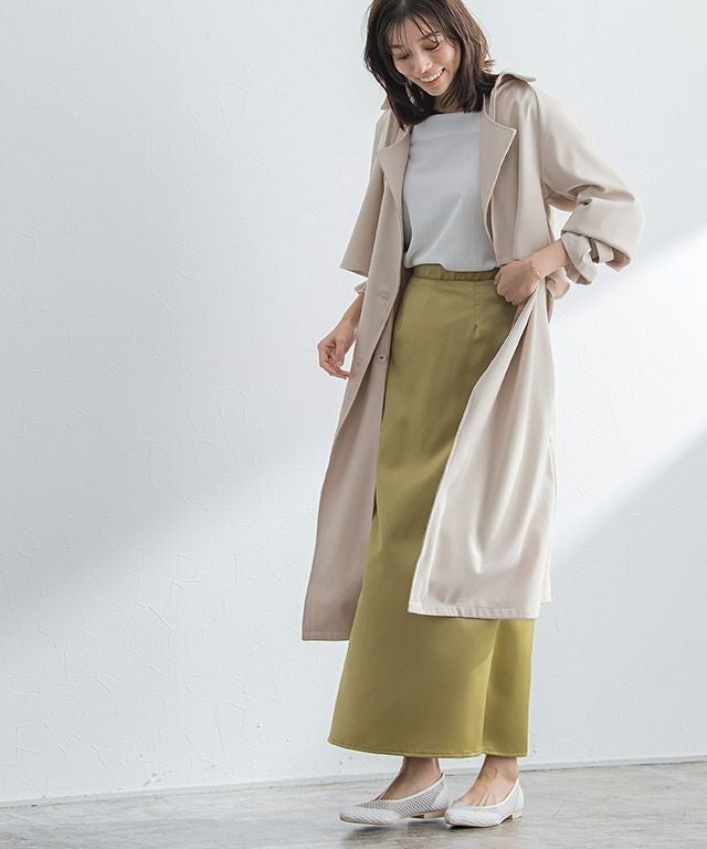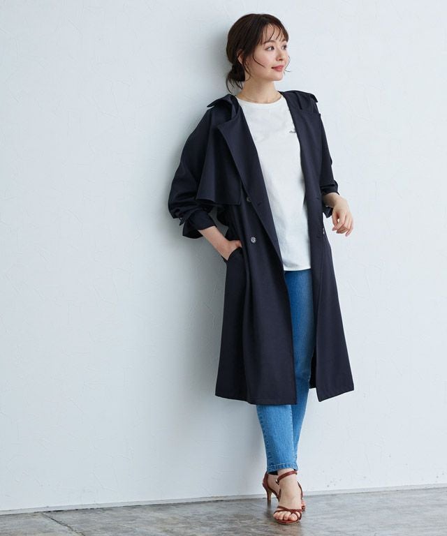 滑らかな肌触りが心地良いトレンチコート。落ち感のある上品な質感が、ワンランク上の着心地へ仕上げます。