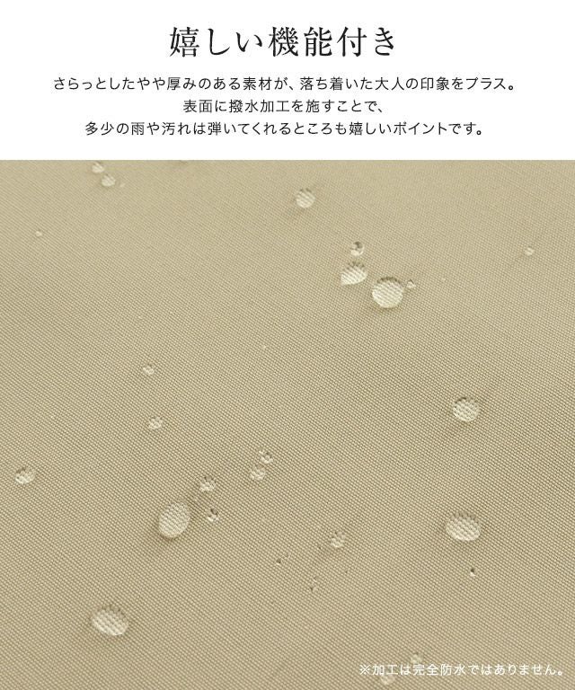 さらっとしたやや厚みのある素材が、落ち着いた大人の印象をプラス。表面に撥水加工を施すことで、多少の雨や汚れは弾いてくれるところも嬉しいポイントです。