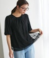 チュール素材を使ったトレンドライクな一枚。柔らかなチュール素材が女性らしい印象です。サラッとした肌触りのカットソーの裏地が付いているので、透け感を気にせず着用できます◎