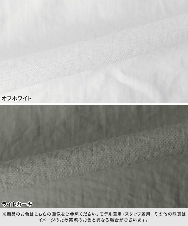 ワッシャー加工を全体的に施したナイロン素材。マットな風合いの中の細かな凹凸感が表情をプラスします。軽い着心地が魅力の素材感です。