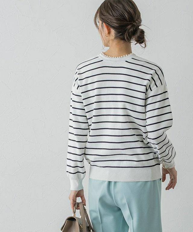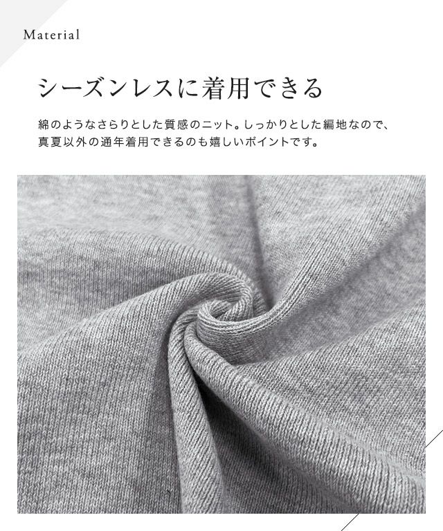 綿のようなさらりとした質感のニット。しっかりとした編地なので、真夏以外の通年着用できるのも嬉しいポイントです。