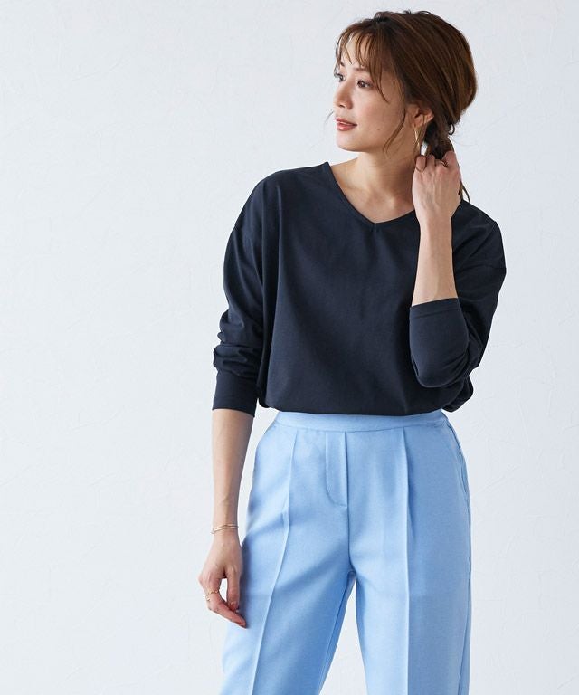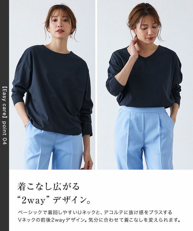カジュアルながらきれい見え“【Easy care】2wayロングスリーブTシャツ”