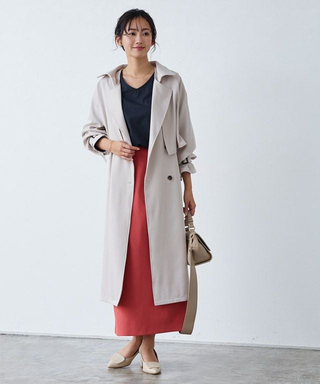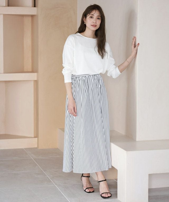 滑らかな表面感がカジュアルながらも上品な印象を与えます。程良くハリがあり綺麗なシルエットを保ち、シワになりにくくお手入れが簡単なところも魅力の一つです。