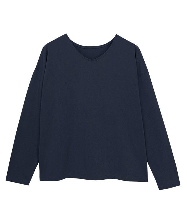 UネックとVネックの前後2wayデザインで気分に合わせて着こなしを変えられます。身幅にゆとりのあるリラクシーなシルエットが楽な着心地です。シンプルなデザインでデイリーな着回しにも活躍する一枚です。