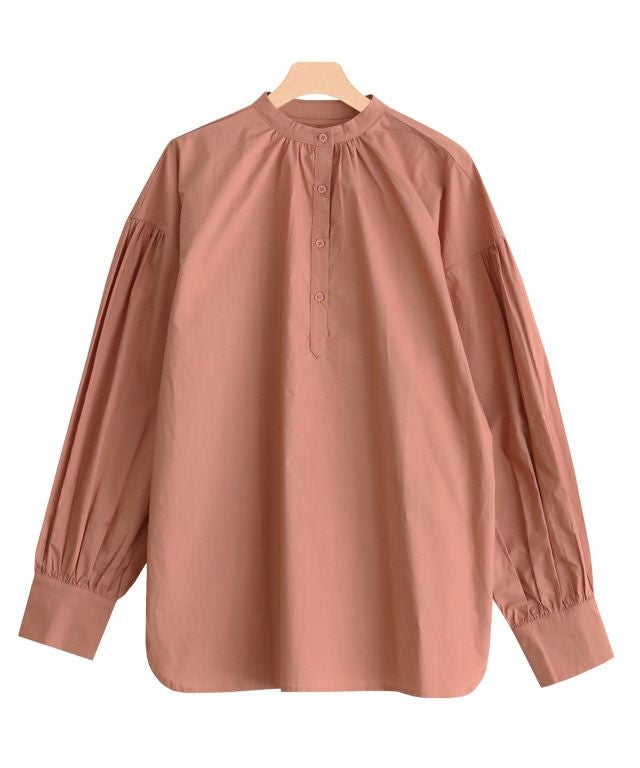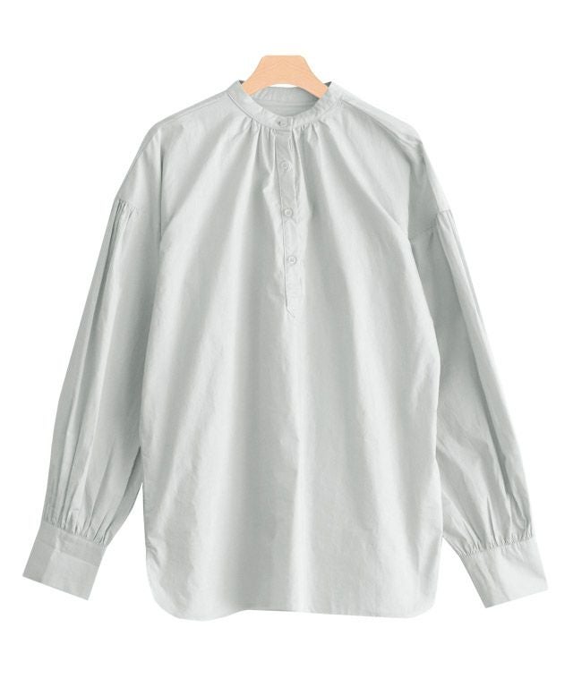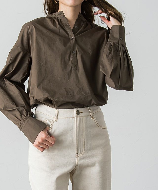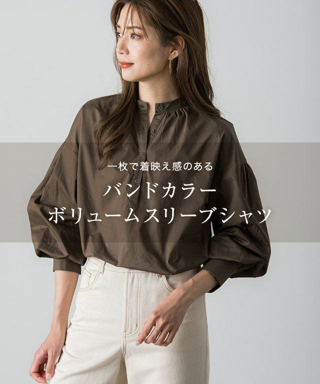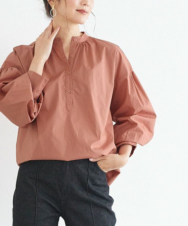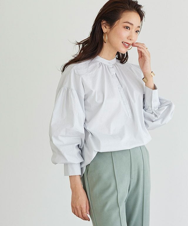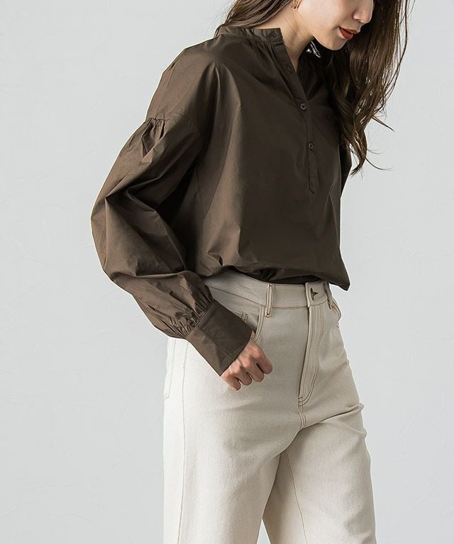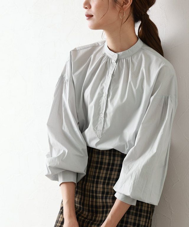 一枚で着映え感のある“バンドカラーボリュームスリーブシャツ”
