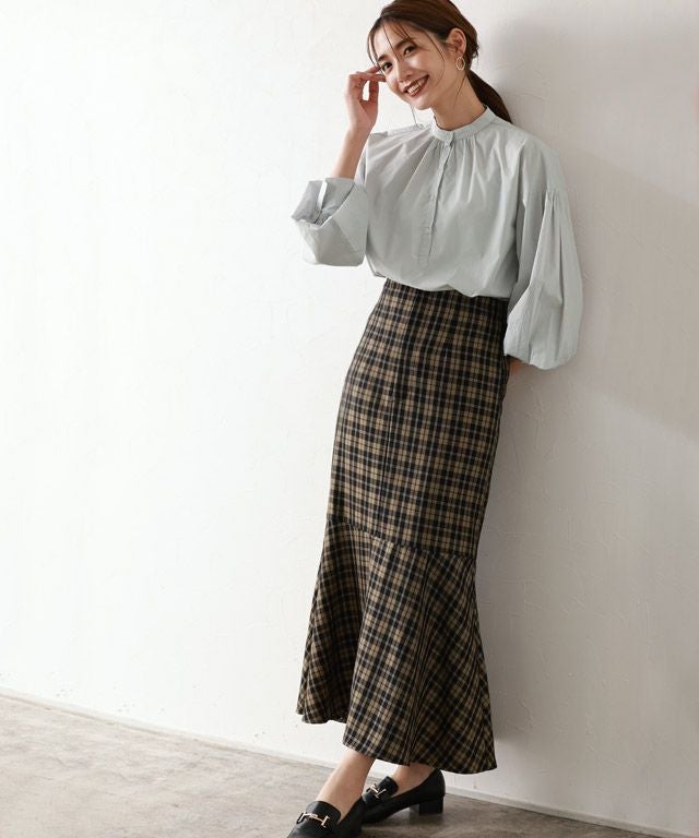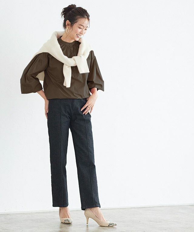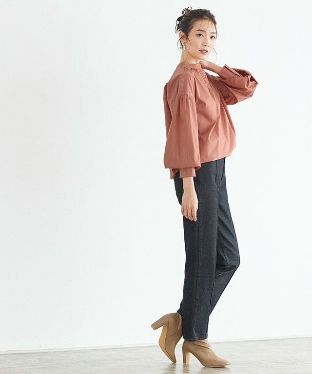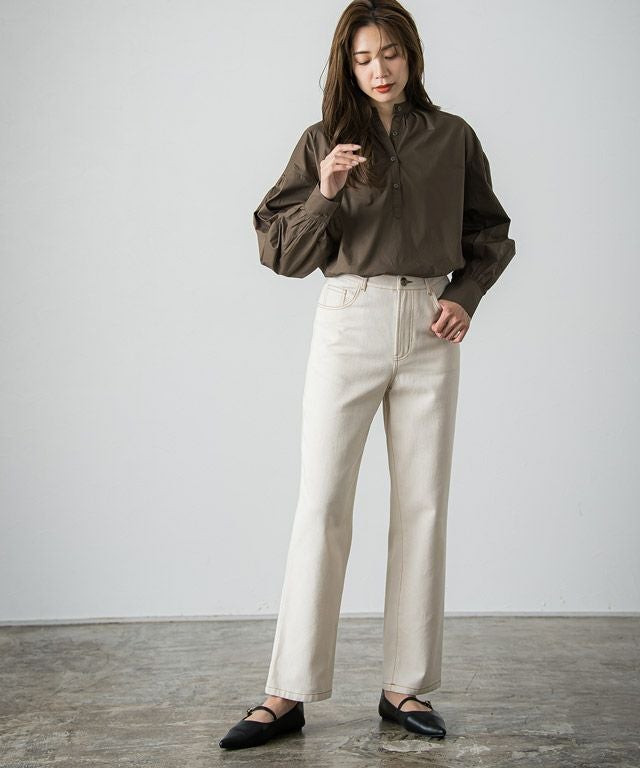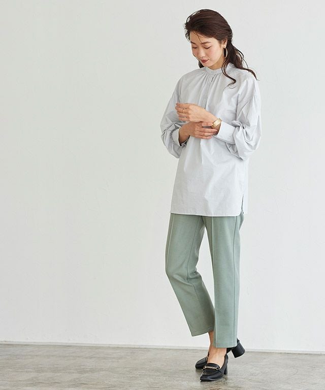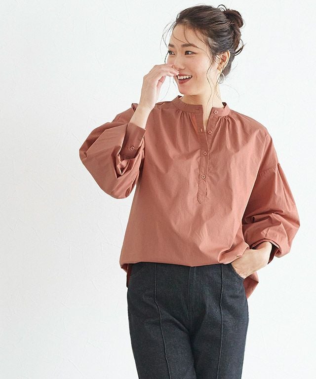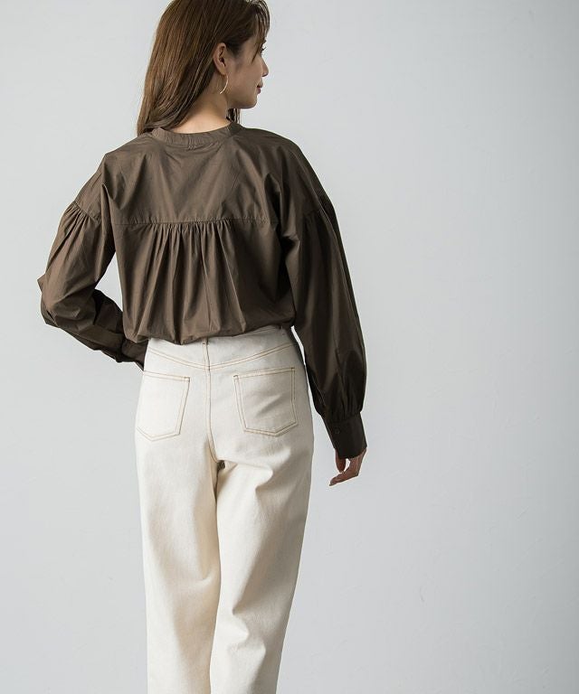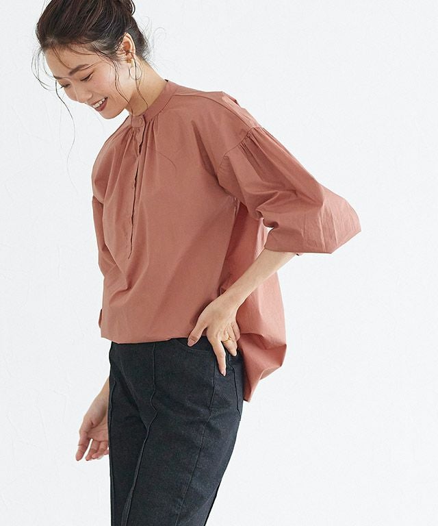 一枚で着映え感のある“バンドカラーボリュームスリーブシャツ”