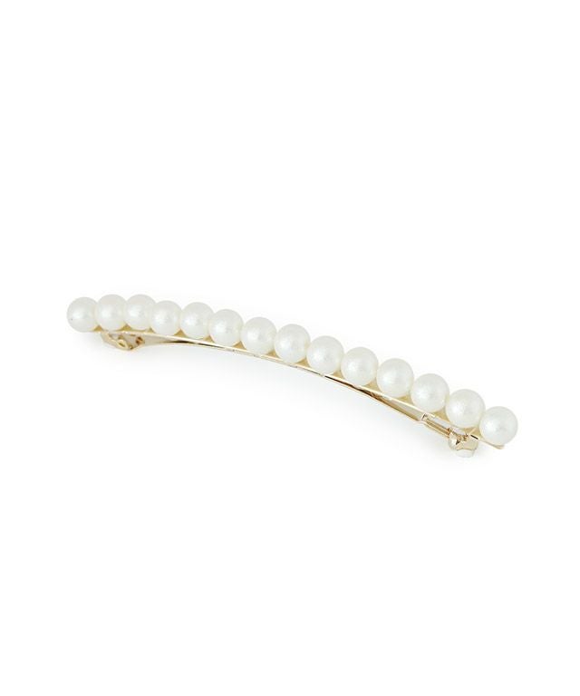 シャイニーパールが印象的な、清楚なバレッタが登場。上品な装いにしてくれるパールがライン状に並んだバレッタ。大きさはやや小さめなので、サイドに留めたり前髪をまとめたりと使い方は様々。大人っぽくも可愛くも仕上がるパール小物です。