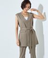 ざっくりと入ったバックスリットがアクセントになったジレベスト。すっきりしたノーカラーデザインでカジュアルなスタイルに大人っぽさをプラスします。付属のベルトでのウエストマークコーデも上級者スタイルへと導きます。