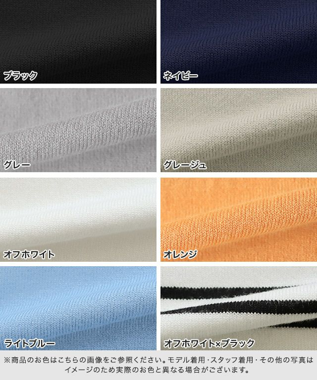 また、ニット製品は生産の過程上「生地を織る際の糸の継ぎ目」繊維の「混紡」、プレス加工、製品洗い加工によって形やサイズ(5cm前後)に誤差が生じる場合がございますが品質上の問題はございません。
