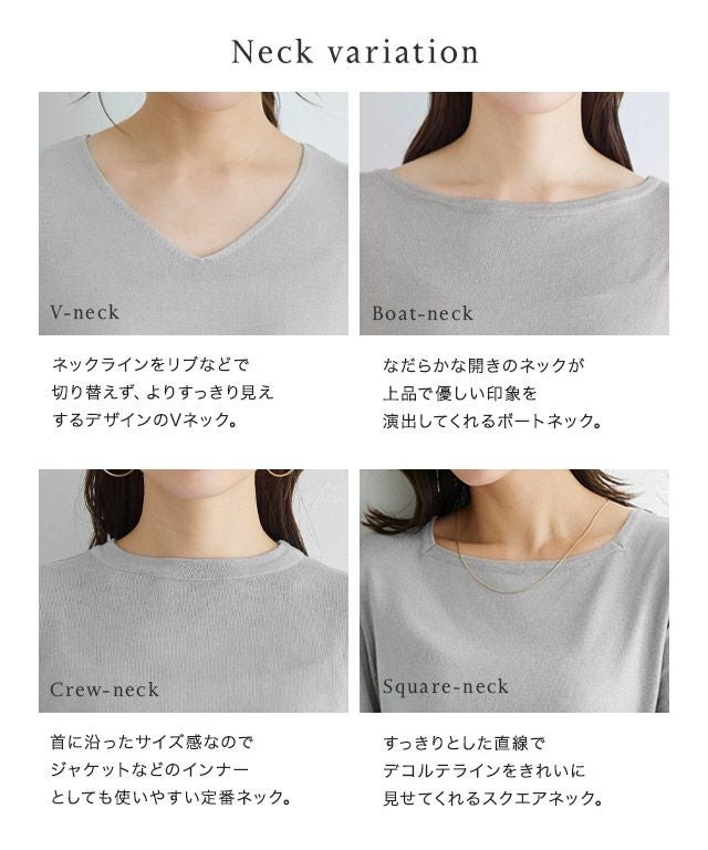 【クルーネック】首に沿ったサイズ感がジャケットなどのインナーとしても使いやすい一枚。