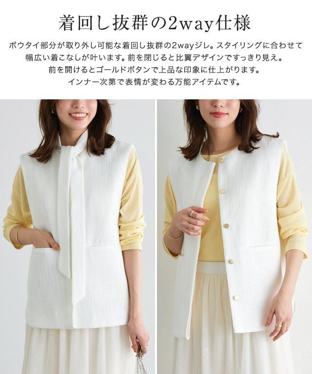 大人の上品見え叶う“2wayボウタイツイードジレ”