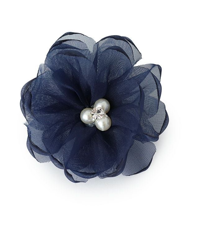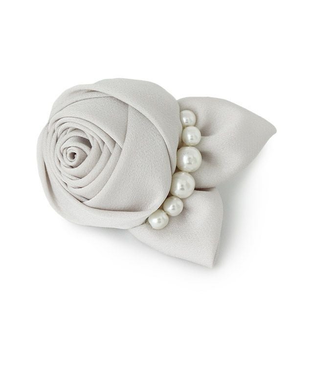 艶やかなフラワーデザインのコサージュ。同系色になじませたり、シックなカラーに華やかさをプラスしたりとコーディネイトが広がるアイテムです。