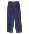 程良く裾に向かって広がったセミフレアシルエットと、あえて長めに設定した丈感で美脚効果を発揮します。センタープレスを施すことでカジュアルスタイルの中にも、きれいめな印象をプラス。幅を持たせた裾のステッチで足元にもアクセントのあるデザインです。