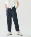 ハイウエストとタックデザインで目線を上に上げ、スタイルアップのスタイリングに導きます。緩めのテーパードシルエットでキレイめな印象ながら程良く抜け感のあるデザイン。シンプルなトップスと合わせるだけで華やかさをプラスしてくれるアイテムです。