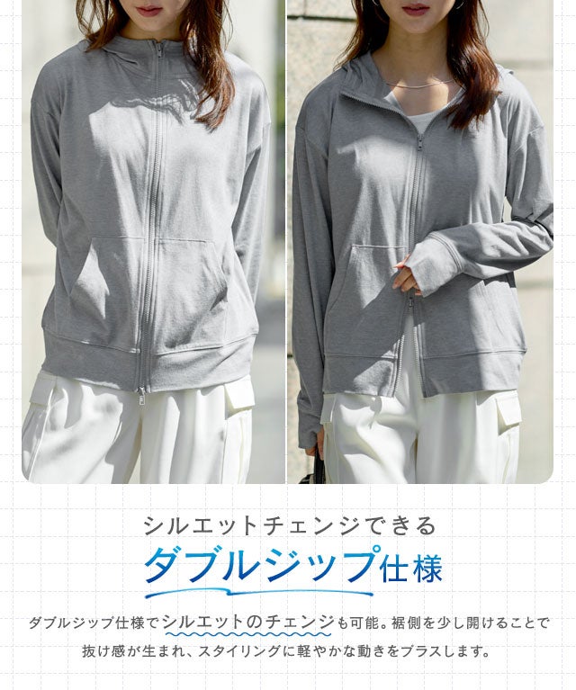 接触冷感/UVダブルジップパーカー