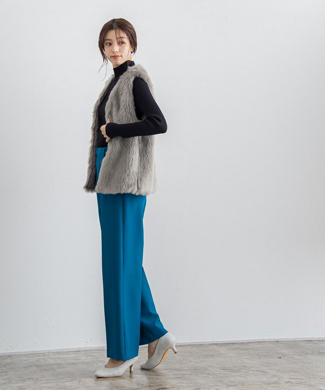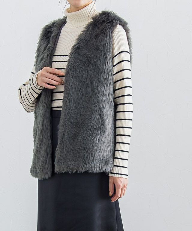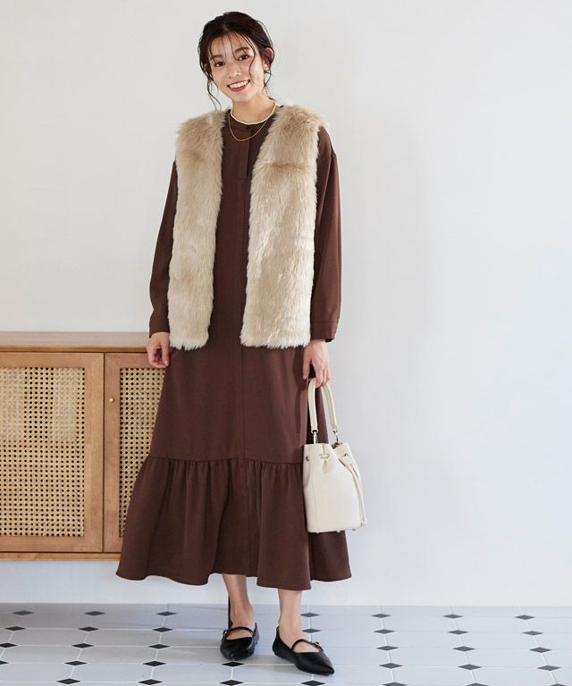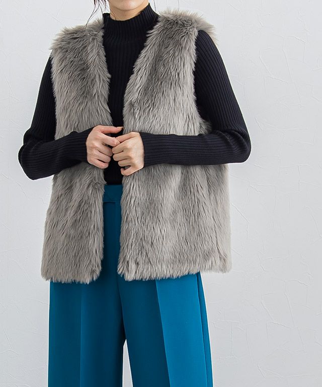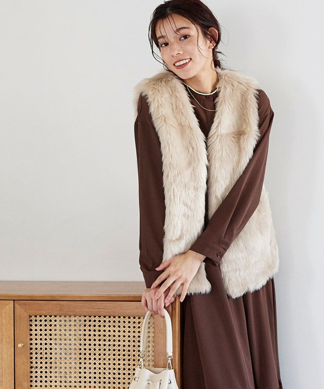 羽織るだけでコーデがランクアップ“フェイクファーベスト” シーズンムード高まるふわふわな肌触りでずっと触れていたくなるフェイクファー素材。 ノーカラーで首元はすっきりとした印象。裾はラウンドカットを施し、ヒップ回りをさり気なくカバーしてくれるデザインに仕立てました。 スカートからパンツまで幅広くバランスを取りやすい丈感です。初秋はカットソーやワンピースなどの羽織りに。肌寒い季節にはインナーにタートルネックを入れたり、コートの上から羽織ったりして、着回しを楽しめます。 【ブランド】 marvelous by Pierrot(マーベラスバイピエロ)